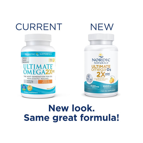 This convenient formula adds 1000 IU vitamin D3 to an extra-large serving of omega-3 EPA+DHA—and packs it all into two mini soft gels, for optimal heart and brain health, and overall wellness.*